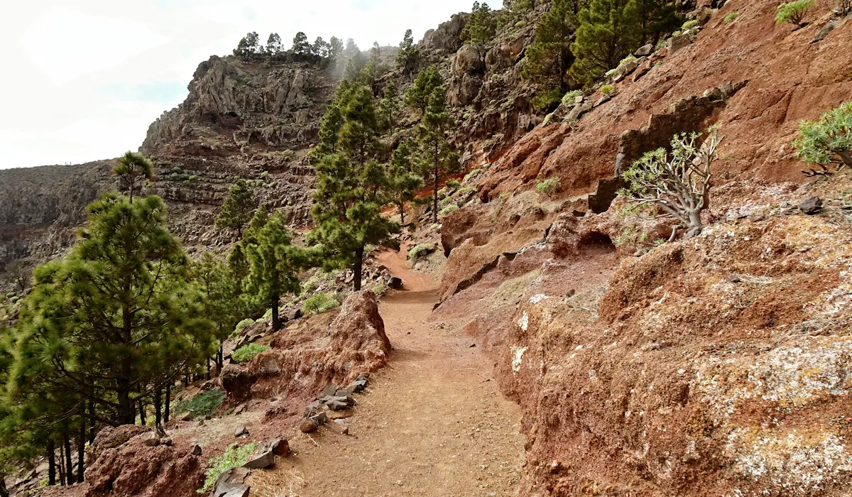 Eine Besonderheit im Süden von La Gomera sind die sogenannten Mar-a-Cumbre-Wanderwege. Sie verlaufen meist erstaunlich geradlinig von der Küste hinauf in das zentrale Bergland und überwinden dabei in kurzer Distanz große Höhenunterschiede. Ein typisches Beispiel dafür ist diese Aufstiegsroute. Sie beginnt in Playa de Santiago und steigt kontinuierlich an: zunächst durch den Barranco de Tapahuga zur Einsiedelei El Joradillo, weiter hinauf zum kleinen Dorf Tejiade und schließlich bis zur Kammstraße GM-2. Von dort ist es nur noch ein kurzes Stück bis zur Degollada de Peraza.
