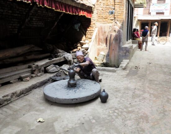 Bhaktapur, nur 16 Kilometer von Kathmandu entfernt, eignet sich bestens, um in Nepal anzukommen und sich zu akklimatisieren. Die „Stadt der Frommen“ ist neben Kathmandu und Lalitpur mit über 81.000 Einwohnern die dritte und kleinste der Königsstädte des Kathmandutals in Nepal. Die Stadt erweckt den Eindruck in einem bewohnten Museum zu spazieren. Die Altstadt, mittlerweile Fußgängerzone, besteht aus engen, verwinkelten Gassen mit kleinen Geschäften, dazwischen Blumengirlanden und mit roter Farbe verzierte Götterstatuen. Immer wieder eröffnen sich dazwischen prachtvolle Plätze mit Palästen und Tempelanlagen. Erlesene, detailgetreue Holzschnitzereien in den Tempeln und an vielen traditionellen Wohnhäusern, Handwerksbetrieben und Geschäften, führen uns in eine andere Zeit. Am Töpferplatz werden von Hand gefertigte Töpferwaren zum Trocknen ausgelegt.