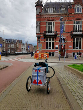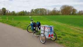 In 11 Etappen – 11 Tagen geht es von Amsterdam über Aachen, Bonn, Mannheim, Pforzheim und Donaueschingen mit ca. 30 Kilogramm Schokolade auf einem Lastenanhänger zurück an den Bodensee.