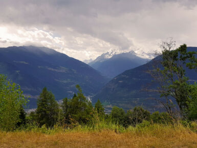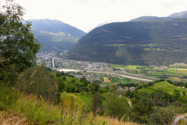 Bis zum Stolleneingang dauert der Aufstieg auf dem Strässchen insgesamt gut eine Stunde. Die Aussicht auf das Rhonetal belohnt uns für die Mühe.