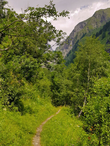 Dort führt ein schöner Pfad entlang des Baltschiederbaches in das Tal bis zur Einöde Ze Steinu.