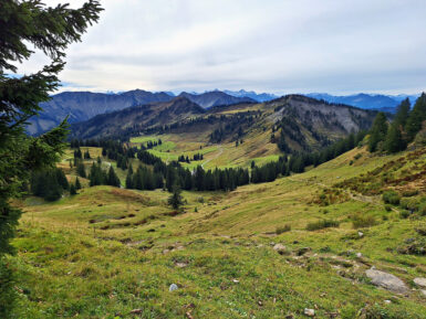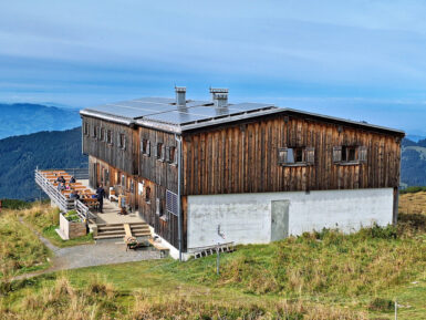 Von dort führt das letzte Wegstück mäßig steil über freies Gelände, vorbei an der Oberen Saluveralpe (1.797 m), bis hinauf zum herrlich gelegenen Freschenhaus (1.846 m).