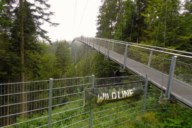 Die Fußgängerhängebrücke Wildline überspannt die Bärenklinge, ein kleines Seitental des Sommerbergs. Mit einer Spannweite von 380 Metern und einer maximalen Höhe von 60 Metern über Grund spannt sie sich vom Nordportal bis zum Südportal. Sie ist die einzige Hängebrücke dieser Art in Europa, die bogenförmig nach oben verläuft. Die Wildline hat eine Stegbreite von 1,20 Meter. Die Haupttragseile sind an zwei jeweils 23 Meter hohen Pylonen an den Eingängen verankert. Die maximale Steigung zur Brückenmitte beträgt zehn Prozent. Das Gesamtgewicht der Brücke beträgt 141 Tonnen, davon entfallen allein 43 Tonnen auf den Laufsteg. Die beiden Pylone wiegen zusammen 82 Tonnen. Die maximale Tragkraft der Brücke beträgt 600 Personen, wobei aus Sicherheits- und Komfortgründen nur maximal 300 Personen gleichzeitig auf die Brücke gelassen werden.