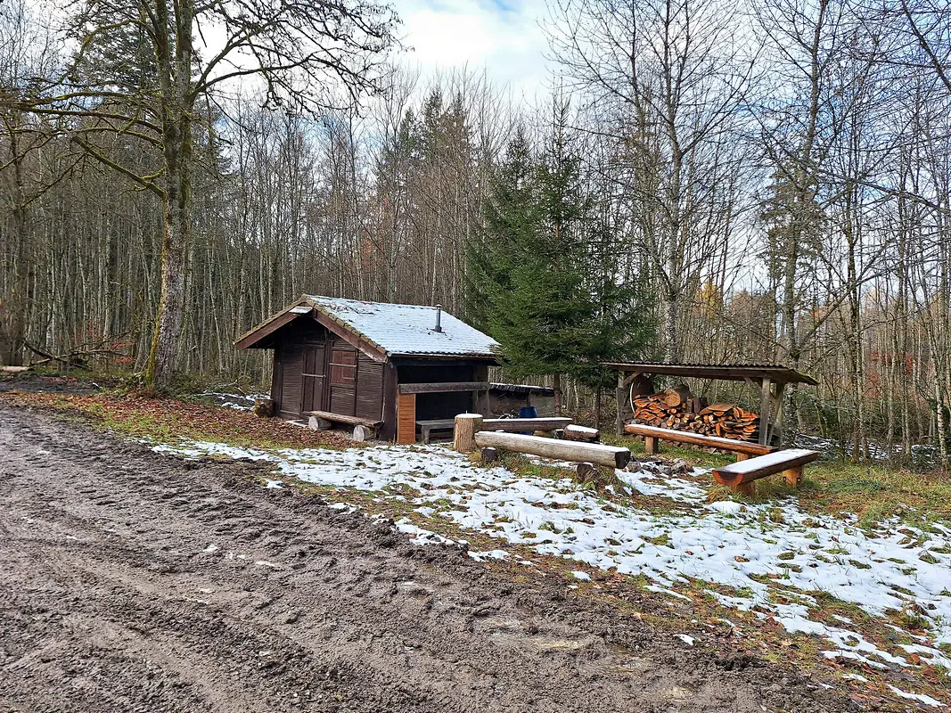 Frisch gestärkt geht es weiter über den Schwarzwald-Jura-Bodensee-Weg in Richtung Gehöft Langenmoss. Der Weg führt durch stillen Wald zwischen Kalkofen und Öde Halde, vorbei an der Webnesthütte, bis ich schließlich wieder in Bankholzen ankomme.