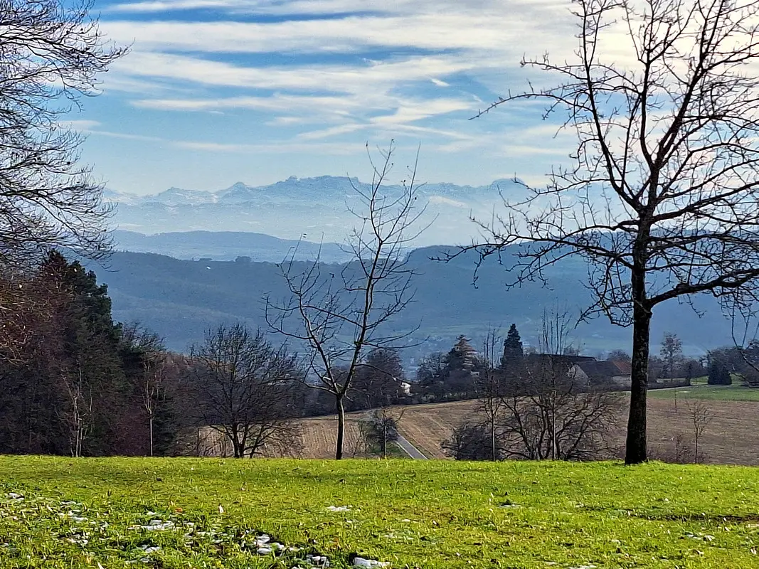 Winterwanderung mit Alpensicht auf der Höri von Bankholzen auf den Schienerberg.