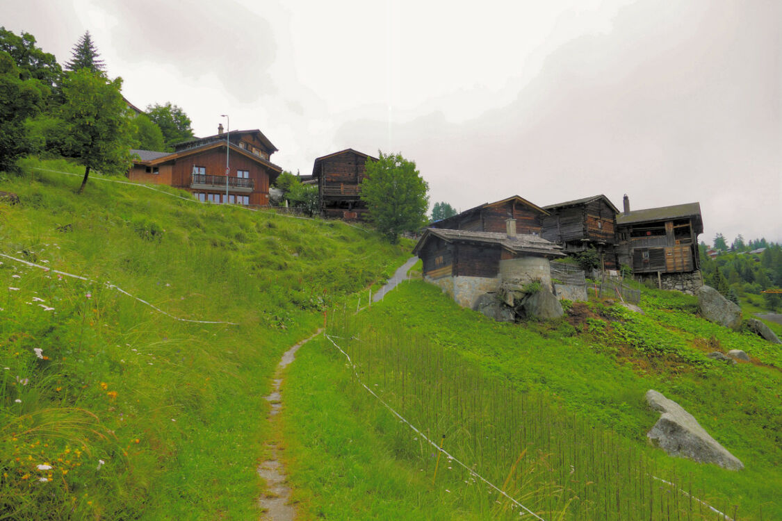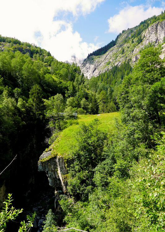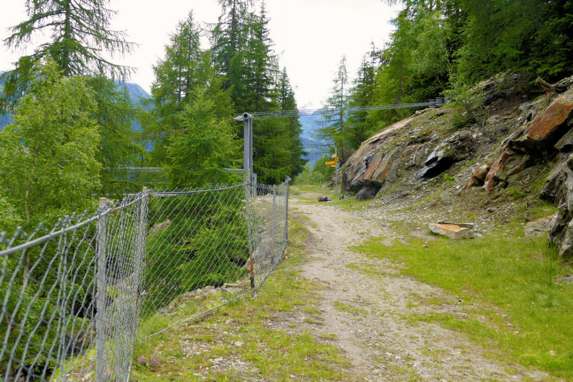 Vom Oberaarsee fahren wir über den Grimselpass hinab nach Gletsch und weiter in das Goms. In Bellwald-Ried finden wir einen kleinen kostenlosen Parkplatz. Hier können wir loswandern, auf schönen Pfaden durch Wald und Wiesen hinab nach Egga und weiter zur Wysswasser-Brücke bei Unnerbärg.