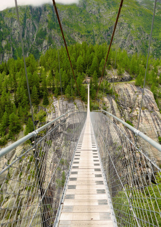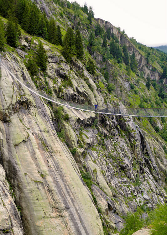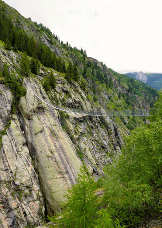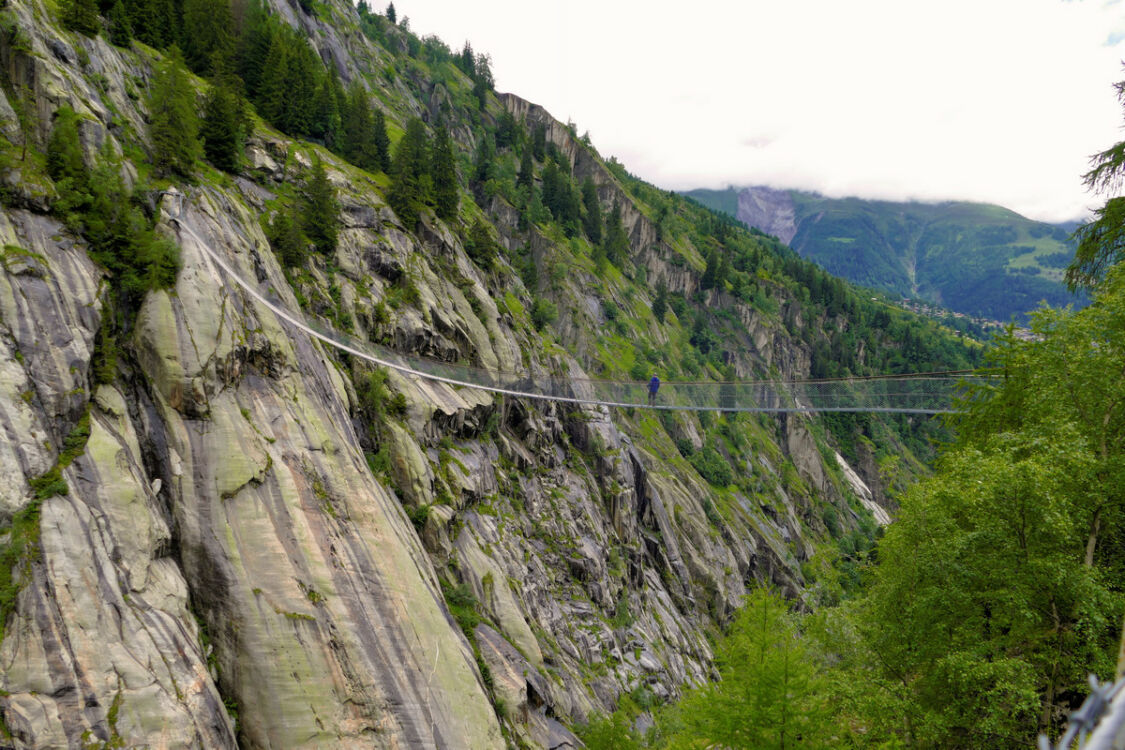 Im wunderschönen Goms im schweizer Kanton Wallis, oberhalb von Fiesch und Bellwald, hängt diese fantastische, atemberaubende, spektakuläre Fussgängerhängebrücke. Gigantisch, traumhaft: die Aspi-Titter-Hängebrücke gehört zu den allerschönsten Top-10-Hängebrücken. Von Bellwald-Ried führt ein nicht allzu schwerer, teilweise recht steiler Pfad hinauf zur Brücke. Die Aspi-Titter müssen wir uns durch eine Wanderung verdienen, die Belohnung dafür ist, dass wir die Brücke und das feine Schaukeln und Schwingen für uns ganz alleine haben.