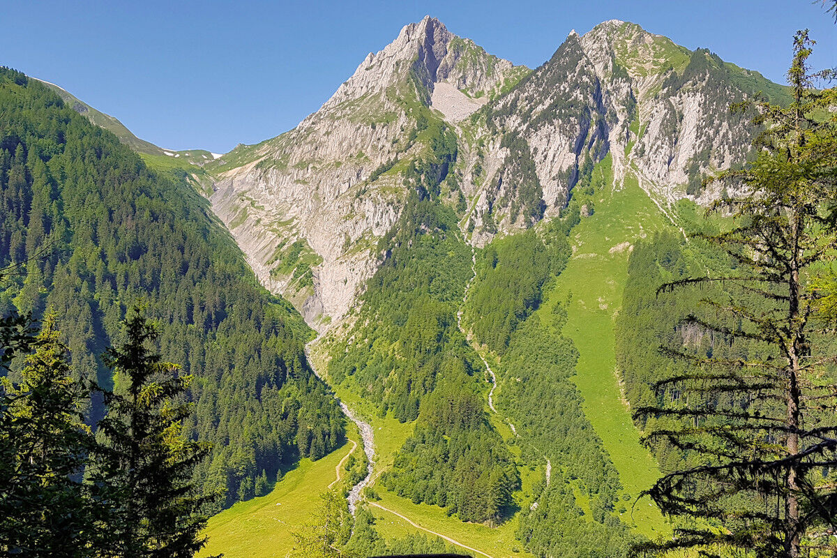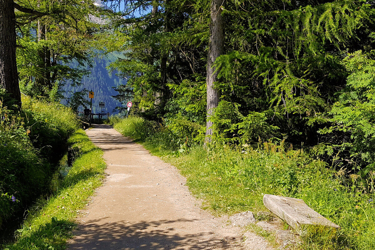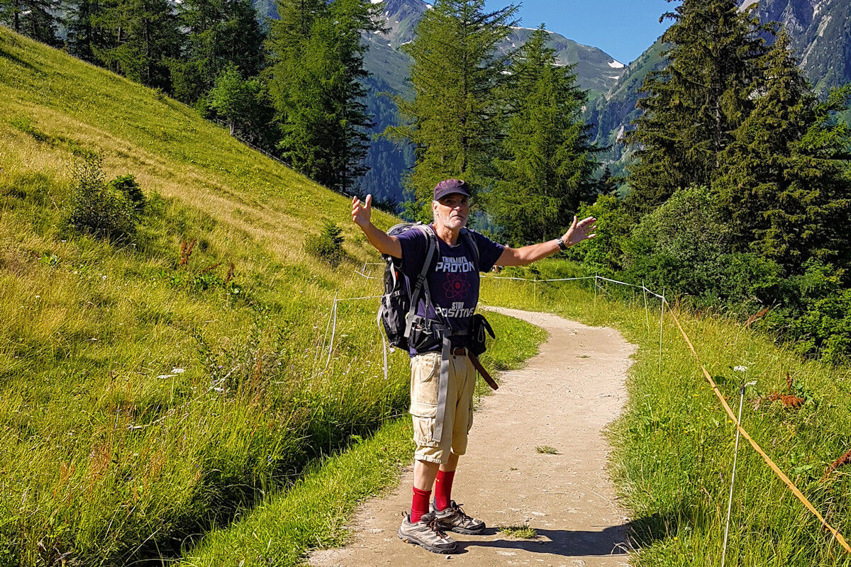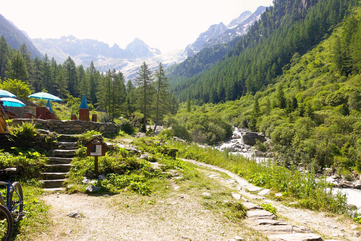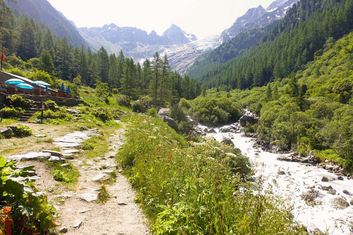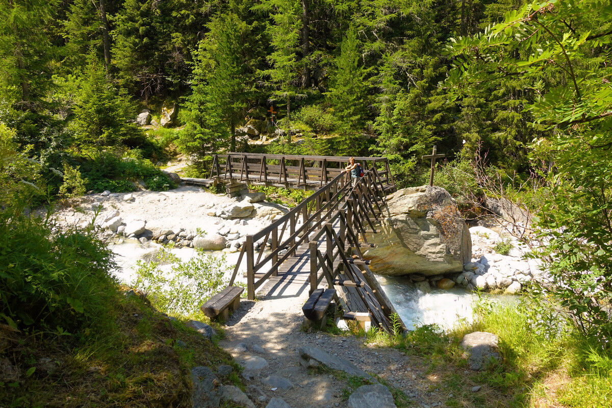 Das Schmelzwasser des Glacier du Trient speist die Bisse de Trient, die westlichste Bisse (Suone) des Wallis. Der Weg entlang der offenen Wasserleitung ist eine wunderschöne, sichere und mühelose Wanderung im Schatten der Lärchen. Links des Weges plätschert das Wasser in den offenen Holzkanälen und rechts eröffnen sich schöne Tiefblicke auf das Dorf Trient. Der Einschnitt des Col de Balme am Gegenhang und der Glacier du Trient und der Glacier des Grands im Talhintergrund bilden einen grandiosen Rahmen.