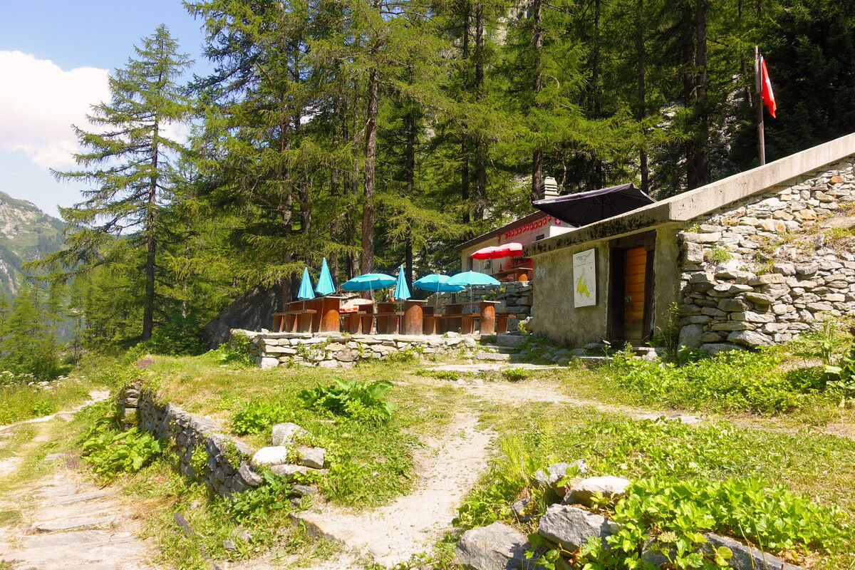 Später öffnet sich der Blick auf den Trientgletscher Die Fuhre nimmt das Schmelzwasser dieses schönen Gletschers auf. An der Wasserfassung befindet sich ein kleines Restaurant, das Châlet du Glacier. Hier endet der erste Teil unserer Wanderung.
