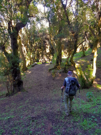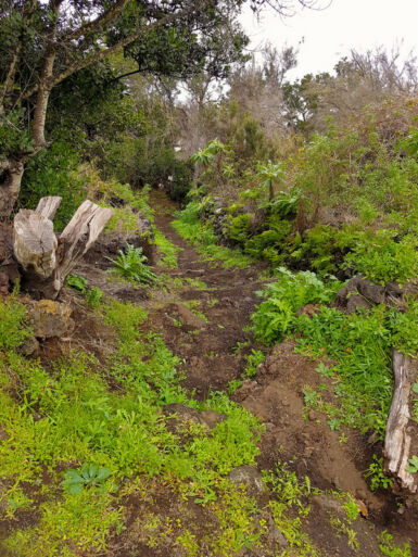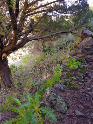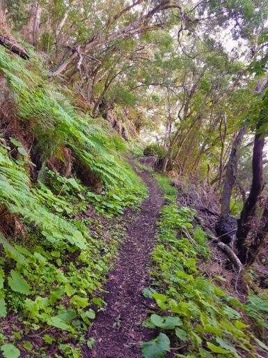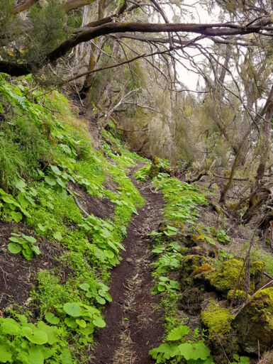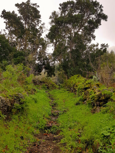 Der Camino de San Salvador ist nicht so bekannt wie die anderen Aufstiegswege und so ist man auf ihm eher allein unterwegs. Der alte Verbindungsweg zwischen Frontera und der Cumbre bietet herrliche Ausblicke über das Tal von El Golfo und vermittelt wunderbare Eindrücke vom Nebelwald in der Steilwand. Unser Ziel ist die kleine, in den Berg gebaute Kapelle Ermita de San Salvador.