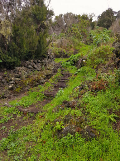 El Hierro: Steiler Aufstieg auf dem Camino de San Salvador, einem alten Verbindungsweg aus dem El-Golfo-Tal zur Kapelle Ermita de San Salvador auf der Cumbre.
