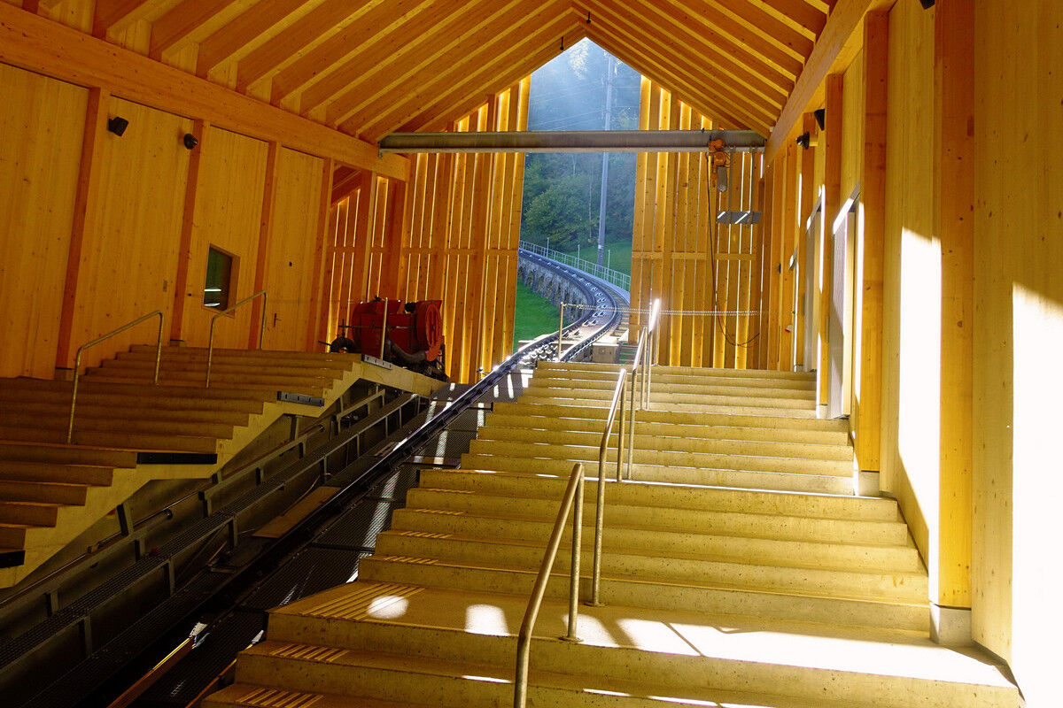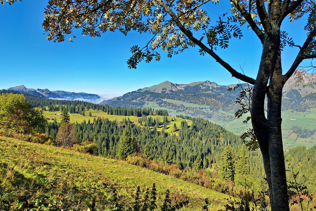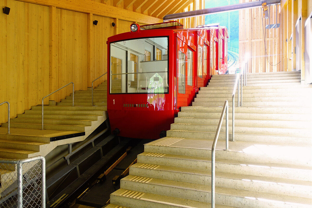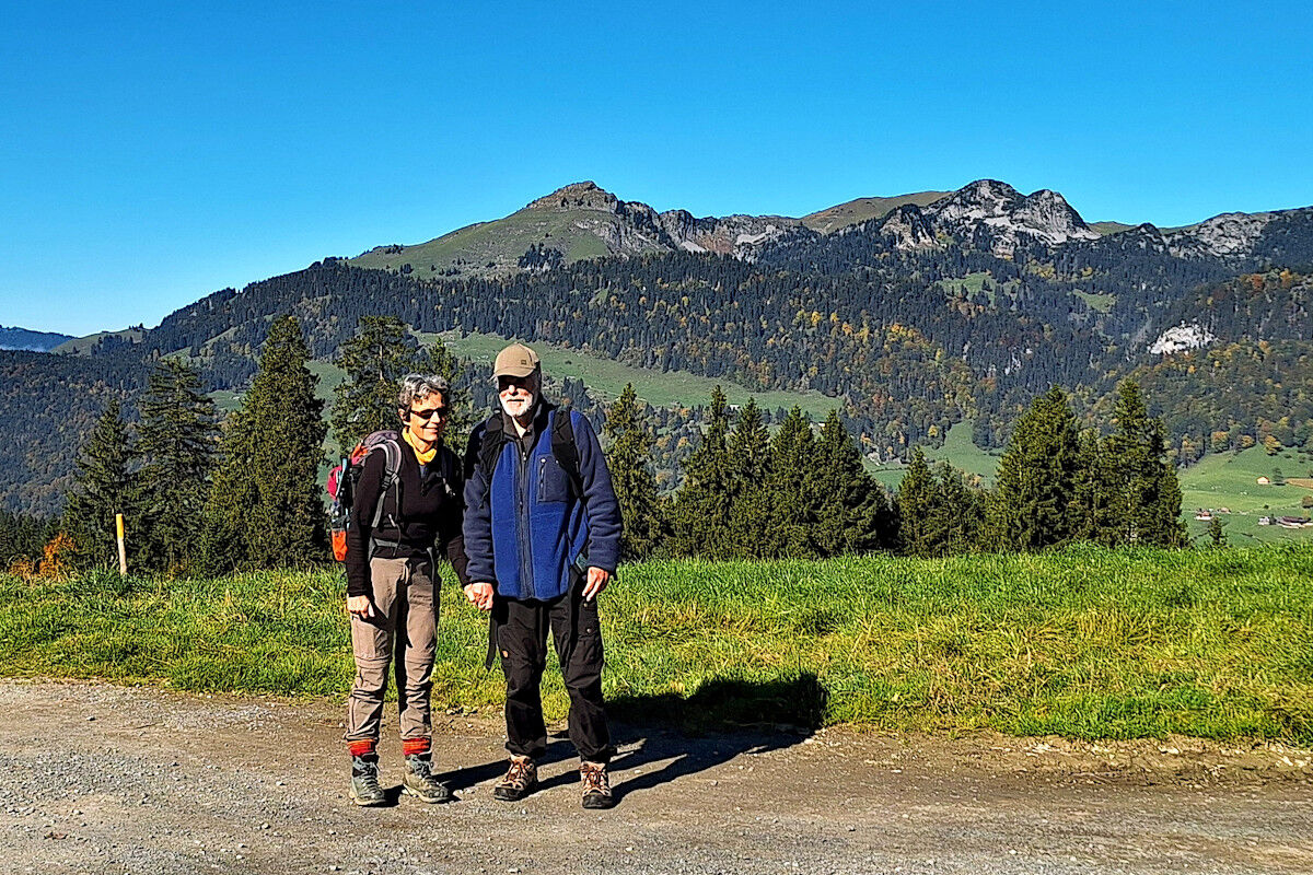 Am Bahnhof der Iltios-Standseilbahn in Unterwasser beginnt unser Tag. Die Sonne scheint, der Himmel ist blau, perfektes Wanderwetter. Wir nehmen die Standseilbahn hinauf nach Iltios und überwinden so bequem die ersten 400 Höhenmeter. Schon während der Auffahrt genießen wir den Blick über das Tal. Die Bahn surrt leise, das Dorf liegt bald unter uns. Oben angekommen empfängt uns frische Bergluft und ein Panorama, das nach Norden den Alpstein mit Säntis und nach Süden die markanten Zacken der Churfirsten zeigt. Über dem Rheintal liegt noch die Nebeldecke.