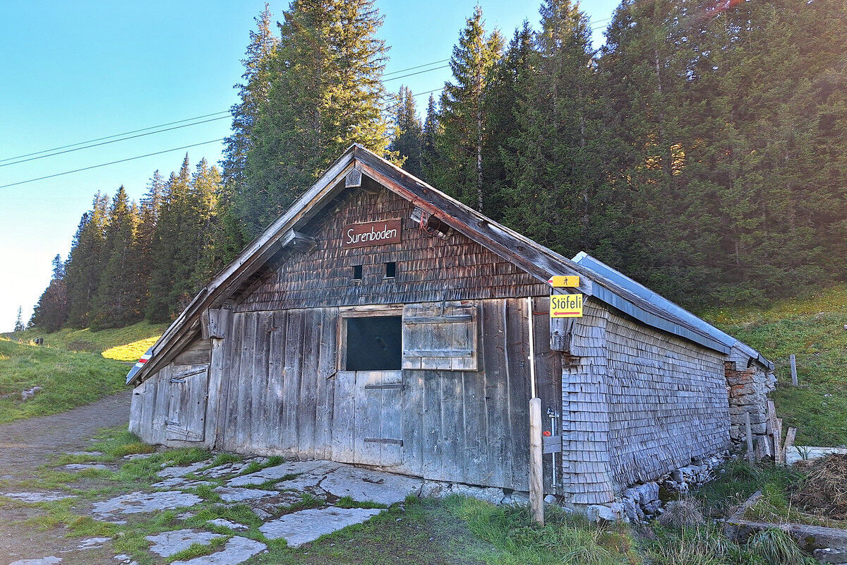 In Iltios startet die Wanderroute “Der Klassiker”, die uns in den folgenden knapp drei Stunden auf den Gipfel des Chäserrugg führen wird. Der gut markierte Weg Richtung Surenboden führt über weite Almwiesen. Immer wieder begeistert der Blick auf den majestätischen Säntis. Bald erreichen wir die kleine Hütte am Surenboden, eine willkommene Gelegenheit für eine kurze Rast.