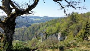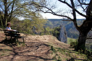 Nicht von ungefähr wird das Durchbruchstal der Oberen Donau auch der „Grand Canyon“ des Landes genannt. Vom 765 m hoch gelegenen Knopfmacherfelsen aus eröffnet sich ein weiter Tiefblick auf die engen Flussschleifen der Donau und die Bahnstrecke Tuttlingen – Sigmaringen. Unsere abwechslungsreiche Rundwanderung über hochaufragende Felsen und entlang der engen Donauschleife lassen die Vielfalt des oberen Donautals so richtig zur Geltung kommen.