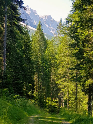 Wir wählen diesen Weg und wandern so in aller Ruhe und fast allein in das Innerfeldtal hinein. An der Hütte ist es dann ziemlich lebhaft, so dass wir noch ein Stück weiter in das Tal hineingehen. Auf der Wiese im Schatten der großen Bäume machen wir eine längere Pause – bevor wir auf dem gleichen Weg zurückwandern.