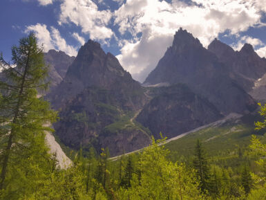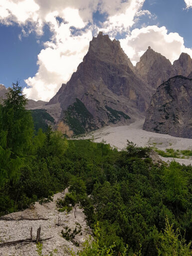 Dolomiten: Schöne Wanderung im Naturpark Drei Zinnen durch das Innerfeldtal zur Dreischusterhütte.