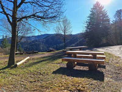 Auf einem Bergrücken zwischen den Freiburger Stadtteilen Günterstal und Kappel liegen in 821 Metern Höhe die wenigen Überreste der Burgruine auf dem Kybfelsen. Rund zwei Kilometer vom Kloster Günterstal entfernt und etwa 500 Höhenmeter über dem Tal erhebt sich die Ruine auf einem markanten, steil aufragenden Gneisfelsen. Von hier öffnet sich ein weiter Panoramablick: vom Feldberg über den Schönberg im Westen und den Schauinsland im Süden bis ins Kappler Tal und weit hinaus in die Breisgauer Bucht. Leider sind derzeit einige Wege wegen Waldarbeiten gesperrt, doch es führen ja zahlreiche Routen hinauf zum Kybfelsen und wieder zurück.