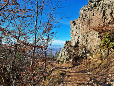 Wanderung mit Natur pur und Hindernissen bei Freiburg auf den Kybfelsen.
