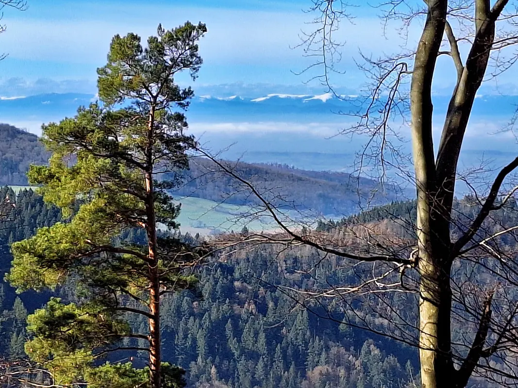 Auf einem Bergrücken zwischen den Freiburger Stadtteilen Günterstal und Kappel liegen in 821 Metern Höhe die wenigen Überreste der Burgruine auf dem Kybfelsen. Rund zwei Kilometer vom Kloster Günterstal entfernt und etwa 500 Höhenmeter über dem Tal erhebt sich die Ruine auf einem markanten, steil aufragenden Gneisfelsen. Von hier öffnet sich ein weiter Panoramablick: vom Feldberg über den Schönberg im Westen und den Schauinsland im Süden bis ins Kappler Tal und weit hinaus in die Breisgauer Bucht. Leider sind derzeit einige Wege wegen Waldarbeiten gesperrt, doch es führen ja zahlreiche Routen hinauf zum Kybfelsen und wieder zurück.