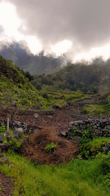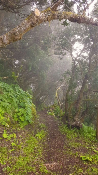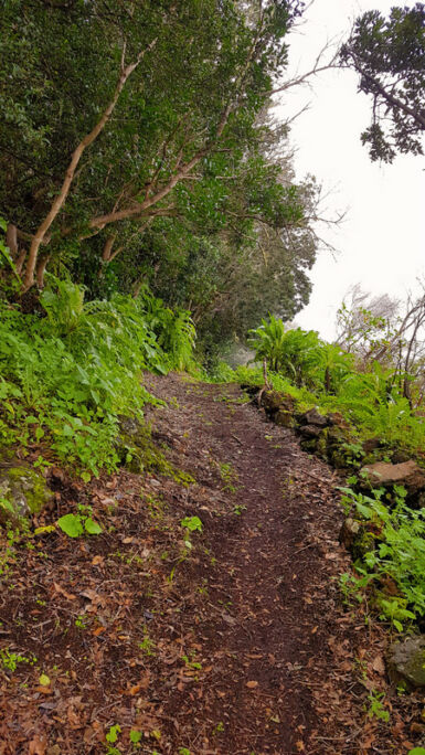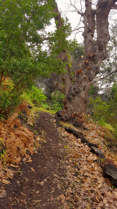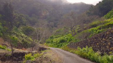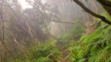 Leider ist der Pfad von Frontera zur Cumbre auf dem Camino de Jinama im oberen Teil wegen Steinschlag unpassierbar und vermutlich auch für lange Zeit gesperrt. So bleibt der steile Weg in das wunderschöne, einsame Hochtal Hoya Pequeña mit seinen Kastanien-, Walnuss- und Obstbäumen inmitten des Nebelwaldes am Fuße der Cumbre. Von hier aus führt ein schmaler Pfad in vielen Serpentinen zum Kamm hinauf und weiter zur Fuente de La Llanía. Der Weg kann ohne Übertreibung als einer der schönsten und abwechslungsreichsten Wanderwege der Insel bezeichnet werden und besticht durch einen ständigen Wechsel der Landschaft und herrliche Panoramablicke. Vor allem aber bietet er einzigartige Eindrücke vom Nebelurwald in der oft wolkenverhangenen Steilwand des Golfo.