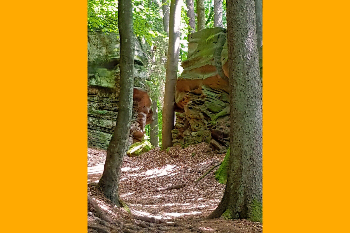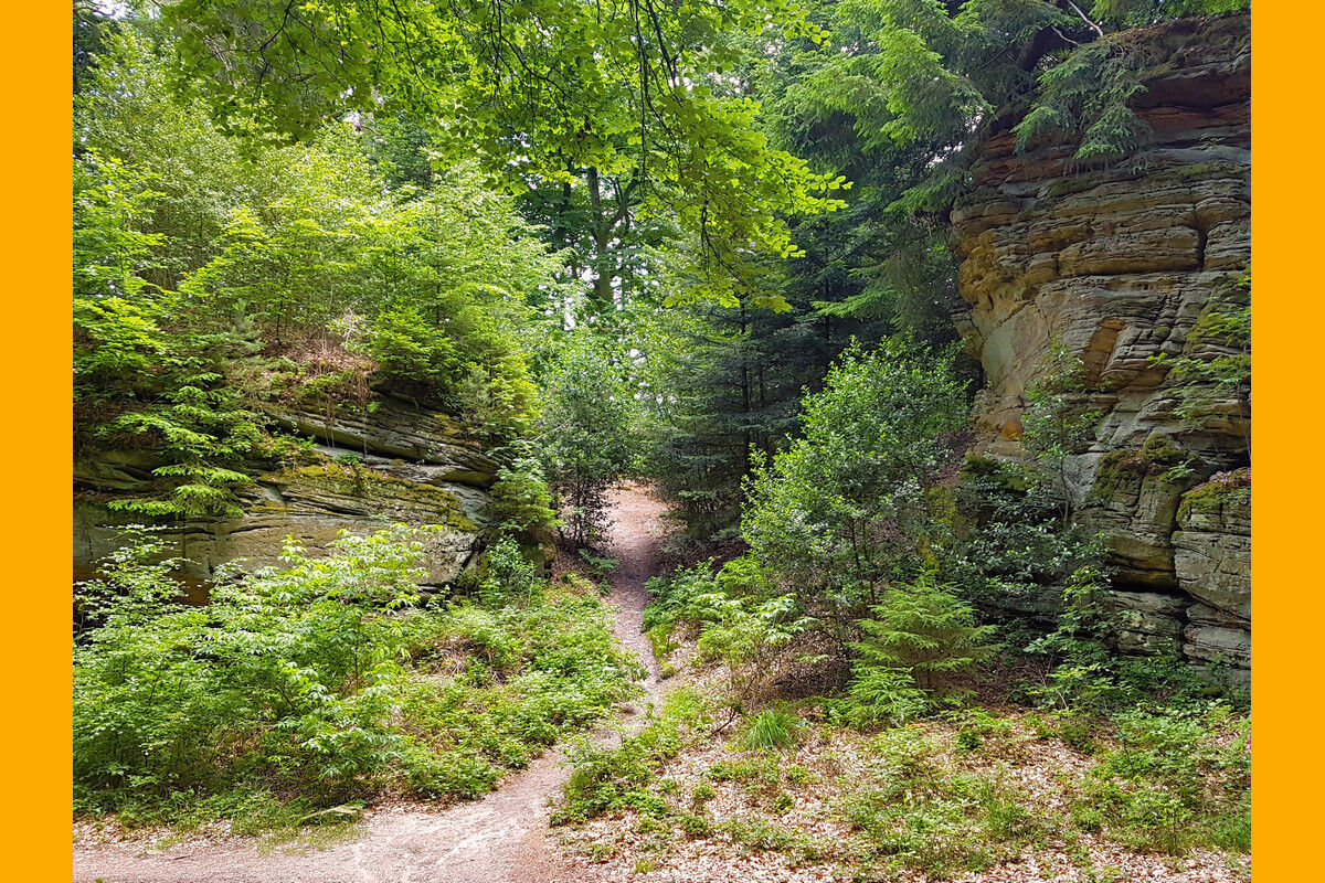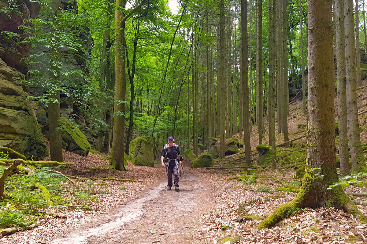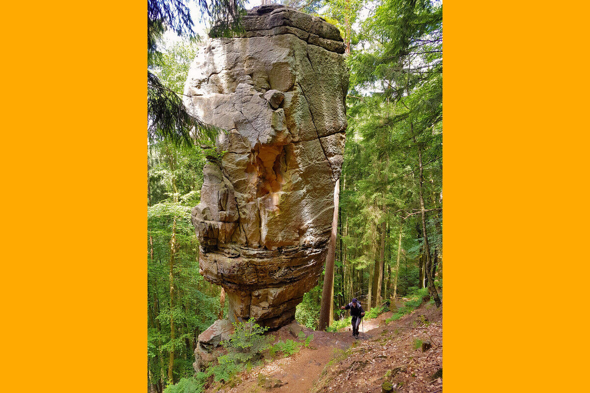 Rundwanderung durch bizarre Felsenlandschaften aus Buntsandstein in der Sauerschweiz bei Bollendorf.