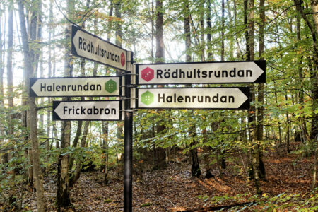 Die Halenrundan, die Rundwanderung um den See Halen und über die Hängebrücke Frickabron ist etwas mehr als neun Kilometer lang und für alle Wanderfreunde gut geeignet. Die Strecke führt über einige kleine Anstiege und Abstiege, bleibt insgesamt jedoch moderat mit einem Höhenunterschied von maximal fünfzig Metern. Festes Schuhwerk ist empfehlenswert, da der Weg auf kleinen Abschnitten etwas wurzelig ist. Entlang des Weges laden mehrere Grillplätze und viele Bänke zu gemütlichen Pausen ein. Startpunkt der Tour ist der Campingplatz Halen.