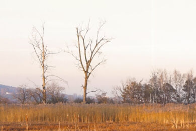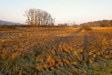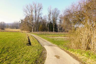 Ein schöner, aber kalter Winternachmittag am Bodensee: Ausgangspunkt unserer Wanderung durch ruhige Riedflächen im Bodenseehinterland ist der kleine Wanderparkplatz »Heidengestied« am Drumlin nördlich von Raderach.