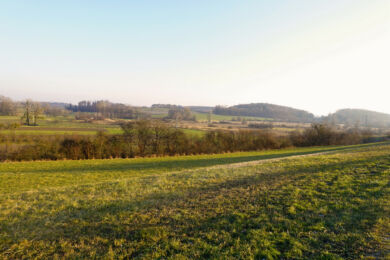 Leichte Rundwanderung durch Kulturlandschaft und Landschaftsschutzgebiet rund ums naturgeschützte Hepbacher-Leimbacher Ried vor dem Gehrenberg.