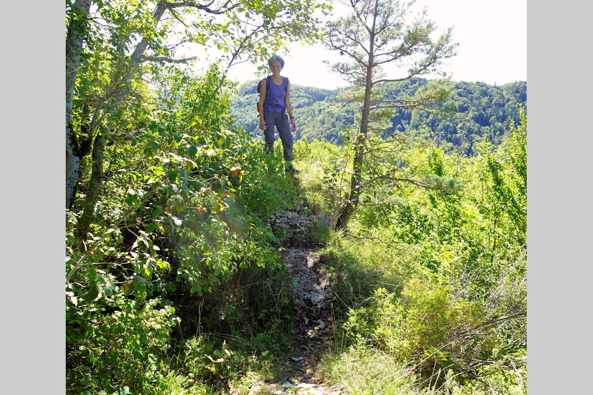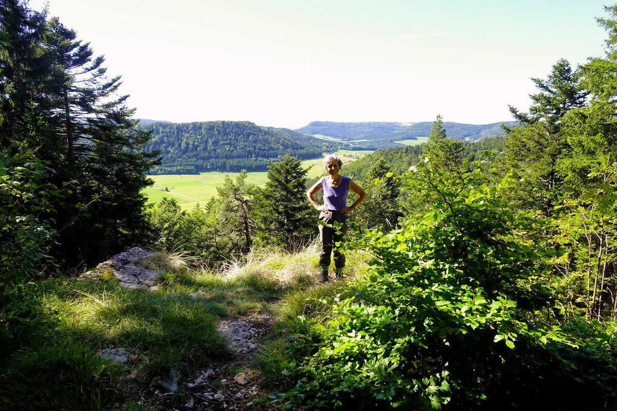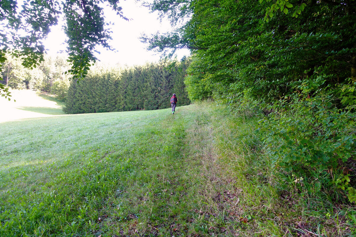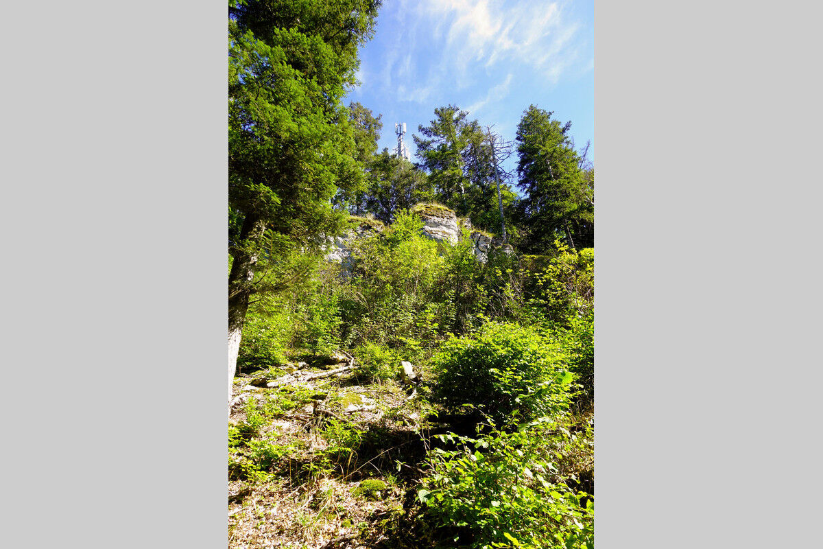 Weiter folgen wir der Kante und schließlich kurz aufwärts auf den Baienberg (975 m). Hier macht eine kleine Lichtung Platz für die Aussicht.