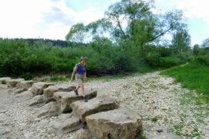 Auf dieser Tour sind es nicht die großen Aussichtspunkte, die uns locken, sondern die verborgenen Wunder am Boden. Im nördlichen Hegau, an der Grenze zur Baar-Landschaft, schlummert ein Kleinod: der frühere Vulkan Höwenegg. Der einst stolze Bergrücken wurde zur Basaltgewinnung abgebaut, füllte sich mit Wasser und bietet heute einen ungewöhnlichen Kratersee. Unsere Wanderung umrundet diesen türkis funkelnden See, führt durch Naturschutzgebiete und entlang der Bahnlinie Hattingen-Immendingen bis an die Donau. Hier kommen wir zur nächsten geologischen Besonderheit: zwischen Immendingen und Möhringen versinkt die Donau an 155 Tagen im Jahr vollständig. Wir können an diesen Tagen sogar einen Abschnitt im trockenen Bachbett wandern.
