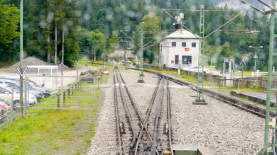 Ein Blick auf die Wettervorhersage sagt: so soll es den ganzen Tag bleiben, Warten auf besseres Wetter würde sich nicht lohnen. Doch die Wettervorhersage sagt noch etwas ganz anderes: im nahen Mittenwald soll es ab Mittag einigermaßen schön sein. Also auf nach Mittenwald, auf zur Karwendelbahn, auf zur zweithöchsten Bergbahn Deutschlands.