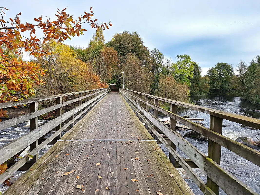 Mörrum liegt nur knapp fünf Kilometer nördlich der Ostseeküste am Mörrumsån. Mit seinen 186 Kilometern Länge und einem Einzugsgebiet von über 3360 Quadratkilometern ist er der größte Fluss, der an der Küste Blekinges in die Ostsee mündet. Auf seinem Weg durchquert er unter anderem den Helgasjön bei Växjö und den Åsnen, Schwedens jüngsten Nationalpark. Südlich von Mörrum fließt er in die Pukavikbucht und ist einer der bekanntesten Lachsflüsse Schwedens. So hat er dem Ort nicht nur seinen Namen gegeben, sondern auch sein Wappen geprägt. Rund um den Fluss wandern wir auf einer schönen Runde, bestaunen die Stromschnellen Kungsforsen und überqueren eine Hängebrücke.