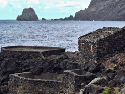 El Hierro: Kurzwanderung entlang der eindrucksvollen El-Golfo-Lavaküste von La Maceta zu den alten Salzbecken Salinas de La Punta.
