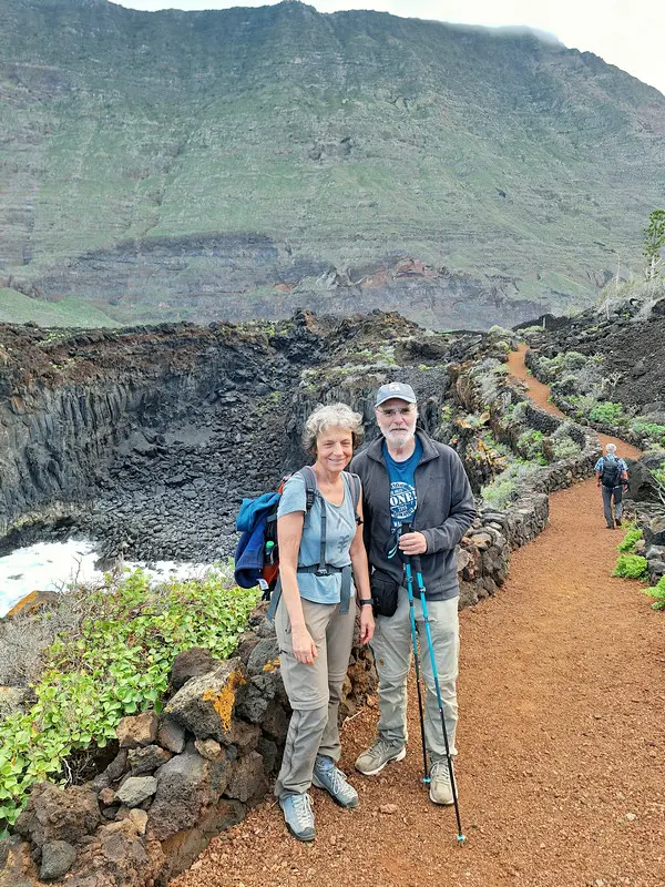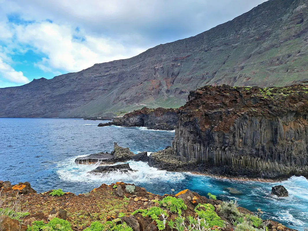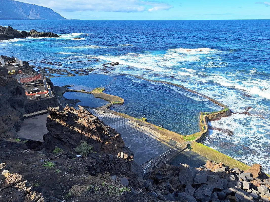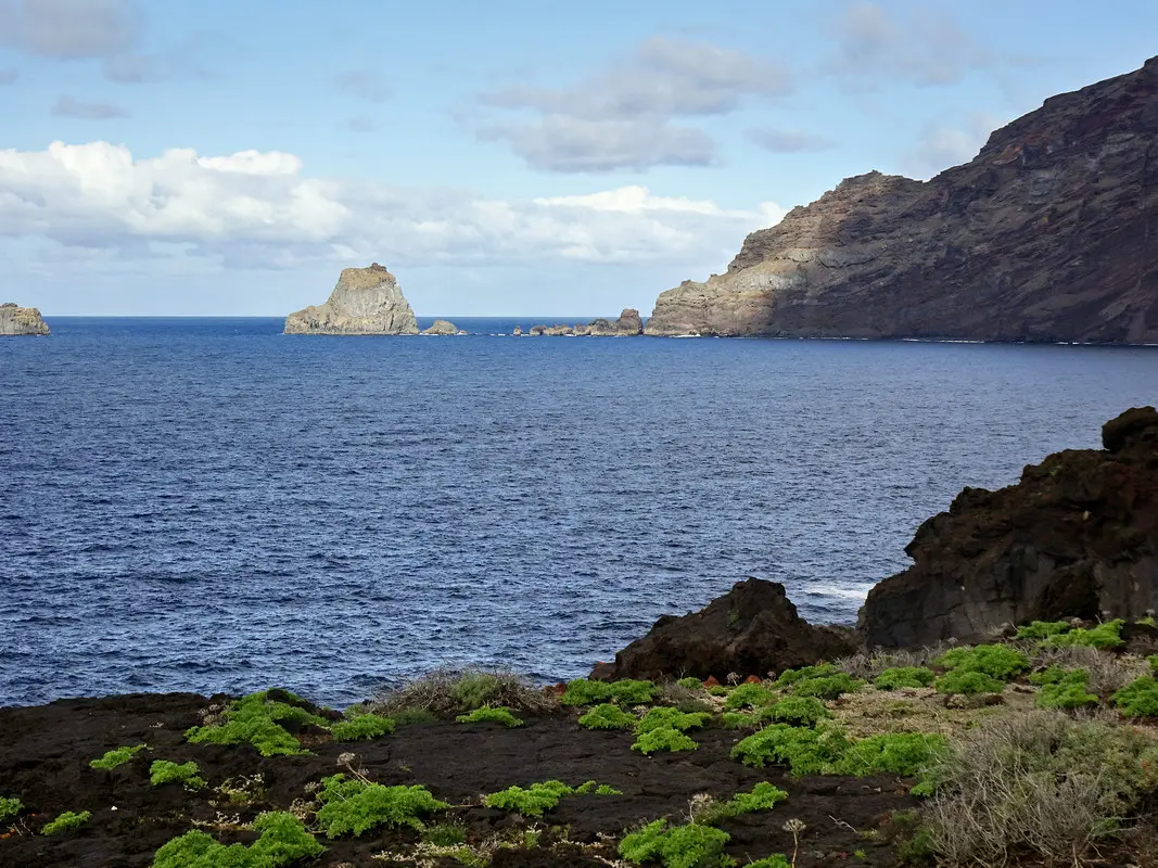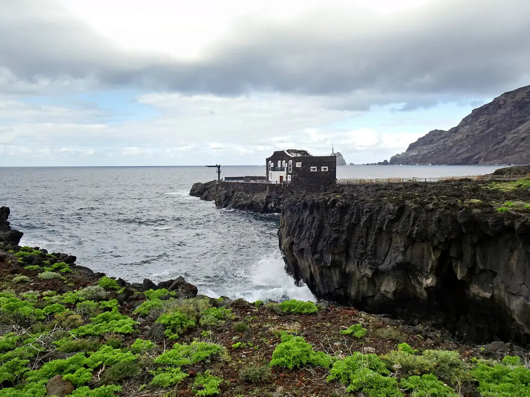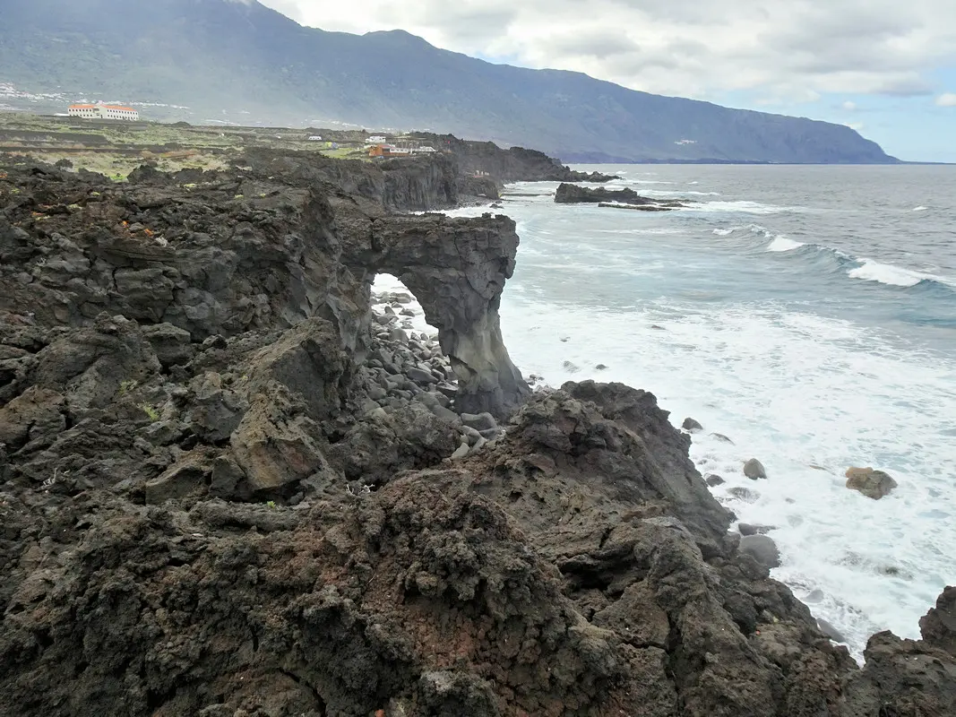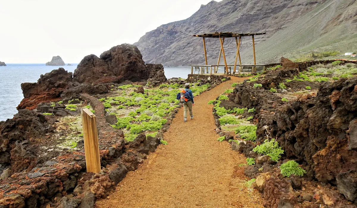 Der Wanderweg zwischen dem Meeresschwimmbecken La Maceta im Süden und dem kleinen Ort Las Puntas im Norden wurde im Jahr 2010 komplett neu angelegt. So wandern wir auf dieser Küstentour bequem über Holzstege durch die Lavafelsen und können zwischendurch auf schön angelegten Rastplätzen pausieren. Immer wieder öffnen sich herrliche Blicke auf Klippen und Felsbuchten, auf Felstore und natürlich über das weite Golftal. Unser Ziel ist das auf einer Lavazunge stehende, von hohen Wellen umspülte Hotel Punta Grande, einst das kleinste Hotel der Welt.