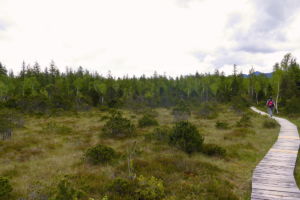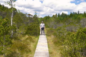 Das Murnauer Moos hat als Moorgebiet in Bezug auf Größe, Geschlossenheit und Ursprünglichkeit in Mitteleuropa den Spitzenplatz inne. Und so begeben wir uns auf den beschilderten Moos-Rundweg, der auf gut 12 Kilometern durch die weite Moorlandschaft führt. Ein Höhepunkt dieser Rundtour ist der Bohlenweg, der uns auf einem schmalen Steg über die sumpfige Lange Filze bringt. Insgesamt ist die Wanderung sehr sonnenverwöhnt und führt nur kurz durch schattigen Wald. Besonders schön sind die Blicke im Nordteil der Runde über das Murnauer Moos zum Estergebirge und zum Wettersteingebirge.