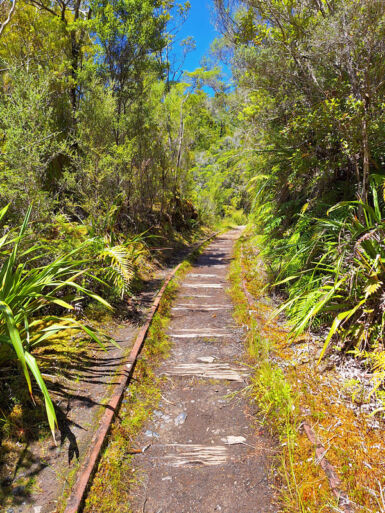 Neuseeland ist ein Wanderparadies! Die atemberaubende Landschaft ist einfach überwältigend. Aber nicht nur das: Manchmal geht es beim Wandern auch um die Geschichte. Und das ist beim Charming Creek Walkway der Fall. Diese Wanderung führt entlang einer ehemaligen Wald- und Grubenbahn am Rande der Ngakawau-Schlucht. Sie wurde 1912 gebaut, um Holz aus dem Tal zu transportieren, und 1929 erweitert, um die Kohlemine Charming Creek zu erschließen.Und so wandern wir heute vorbei an den Hinterlassenschaften der Minenarbeiter, verlassenen Tunneln und immer wieder Steinkohle – dem schwarzen Gold der West Coast.