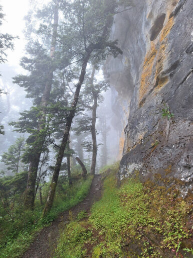 Der Tag beginnt kühl und ruhig. Seit dem frühen Morgen fällt ein feiner, gleichmäßiger Regen. Tiefe Wolken hängen über dem See und verdecken vollständig die umliegenden Berge. Man weiß, dass sie da sind, sieht sie aber nicht.