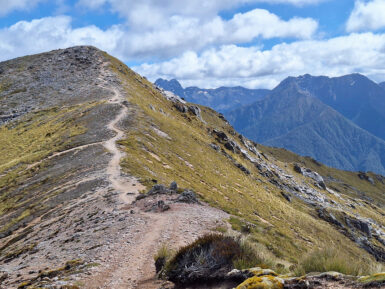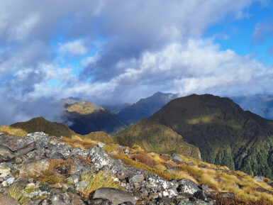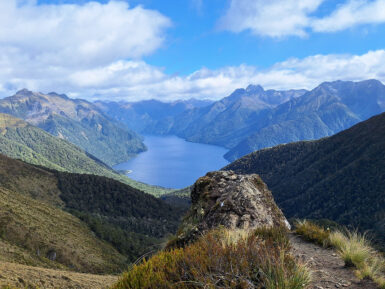 Ein kurzes Stück nach dem Abzweig zum Mount Luxmore komme ich zur Forest Burn Shelter, Zeit für eine kleine Pause. Und weiter geht es im Auf und Ab auf dem Gratweg bis zur Hanging Valley Shelter. Hier bleibe ich ein wenig länger. Nicht nur wegen der tollen Ausblicke! Ich sitze mitten im schönsten Abschnitt des Kepler Tracks, für den sich alle Mühen gelohnt haben.