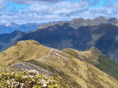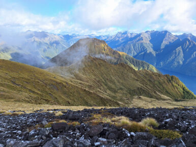 Auf dem Dach des Fiordland. Der Kepler Track zählt zu den spektakulärsten Wanderungen Neuseelands. Berühmt ist er vor allem für die längste Gratwanderung Neuseelands mit atemberaubenden Ausblicken auf den Lake Te Anau, den Lake Manapouri und die umliegenden Gipfel, oft sogar über den Wolken.