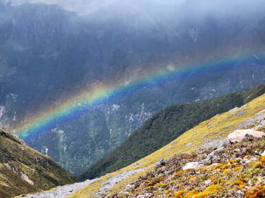 Etappe 2: Luxmore Hut (1.085 m) – Luxmore Saddle (1.400 m) – Hanging Valley Shelter (1.390 m) – Iris Burn Hut (497 m) – 14,2 km
