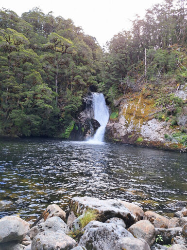 Ein 20-minütiger Spaziergang von der Hütte aus führt zum hübschen Wasserfall Iris Burn.
