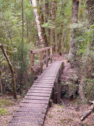 Doch zuerst gönnen wir uns eine Kaffeepause im Camper – endlich wieder ein richtig guter Kaffee! Ich möchte den Kepler Track richtig beenden und bis zum offiziellen Ende laufen. Also überquere ich die Hängebrücke erneut und folge dem Track weiter. Er verläuft oberhalb des Flusses, zunächst Richtung Osten, dann nach Norden.