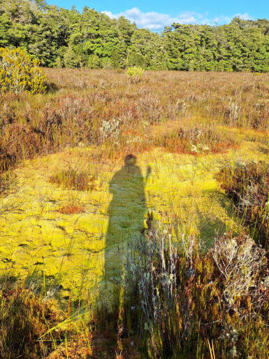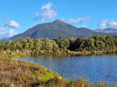 Heute wandere ich die letzte Etappe des Kepler Tracks – und erneut begleitet mich perfektes Wanderwetter. Kurz nach dem Start entfernt sich der Weg vom Lake Manapouri. Ich erreiche einen Aussichtspunkt in den sogenannten Wetlands. Diese Sumpflandschaft hat eine wichtige Funktion: Bei starkem Regen nimmt sie überschüssiges Wasser auf und gibt es in Trockenzeiten wieder langsam ab. So sorgt sie für einen ausgeglichenen Wasserpegel in Flüssen und Seen.
