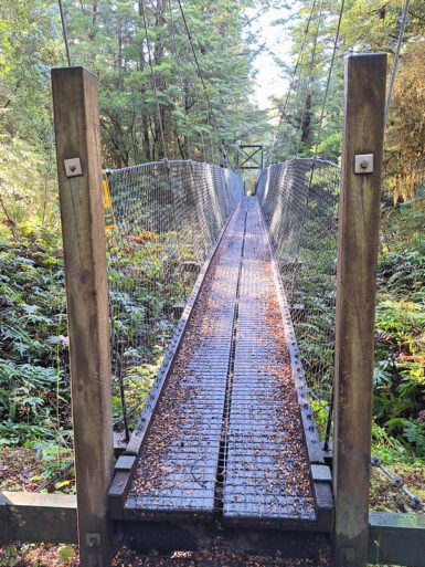 Von hier ist es nicht mehr weit bis Rainbow Reach. Dort überspannt eine lange Hängebrücke den Waiau River – und auf der Brücke wartet schon Dieter, der mich mit einem breiten Lächeln empfängt. An diesem Punkt könnte ich die Wanderung beenden und gemeinsam mit ihm im Camper den Rückweg antreten.