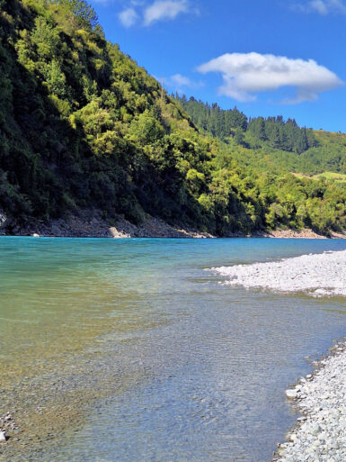 Reservierungen sind nicht möglich, aber am Vortag der Anreise kann man telefonisch nach freien Plätzen fragen. Strom gibt es auf dem Platz nicht, auch der Mobilfunkempfang ist schwach. Doch gerade diese Abgeschiedenheit macht den besonderen Reiz aus: Wir genießen die Ruhe, die Nähe zur Natur, den freien Blick auf den Fluss und einen der beeindruckendsten Sternenhimmel Neuseelands.