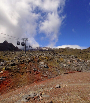 Die Fahrt mit der „Sky Waka“ zur auf 2.020 Metern gelegenen Bergstation mit Restaurant dauert etwa zehn Minuten. Die bodentiefen Panoramafenster der Gondeln eröffnen atemberaubende Blicke auf die Weite des Tongariro-Nationalparks – perfekte Fotomotive inklusive.
