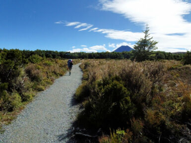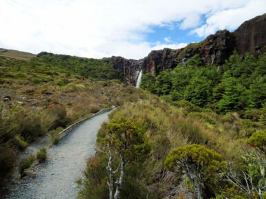 Der Tongariro National Park liegt im Zentrum der Nordinsel Neuseelands. Er ist der älteste Nationalpark Neuseelands. Im Park befinden sich drei aktive Vulkane: der Tongariro (1.968 m), der Ngauruhoe (2.291 m) und der Ruapehu (2.797 m). Auf dem Gebiet des Nationalparks befinden sich auch mehrere Kultstätten der Māori, die die Vulkane als heilig verehren. Von der kleinen Siedlung Whakapapa Village (1.140 m) am Fuße des Mt. Ruapehu starten wir diese Wanderung zu den spektakulären Taranaki Falls.