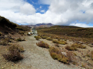 Die Vulkanlandschaft des Tongariro Nationalparks beeindruckt uns auf dieser Tour mit immer neuen Bildern. Staunend wandern wir durch kleine Wälder und über die weite, trockene Tussockgraslandschaft, umgeben von Vulkankratern und begleitet vom Wairere Stream, der das größte Flusstal des Nationalparks bildet.