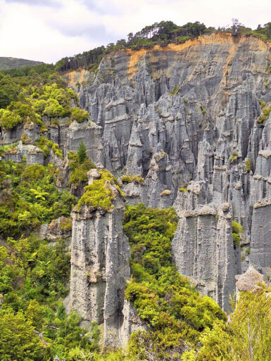 Vor etwa sieben Millionen Jahren war das heutige Aorangi-Gebirge eine Insel. Durch die Erosion des Gebirges wurden Geröll und Schutt an die Küste gespült, wo sie im Laufe der Jahrtausende eine eigene Sedimentschicht bildeten. Einige der Sedimente sind heute noch zementartig miteinander verbunden, andere wurden weggespült. Das Ergebnis sind die Pūtangirua Pinnacles – eine faszinierende Ansammlung von Sedimentpfeilern.
