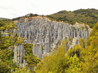 Neuseeland: Kurzwanderung zu einer bizarren Felsnadel-Landschaft – zu den Pūtangirua Pinnacles.